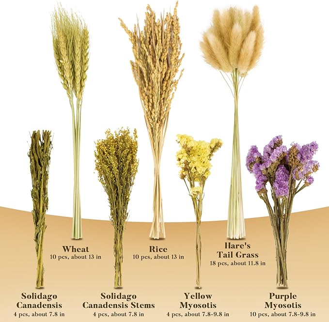 - Perfect Decoration: Dried flowers are bright and durable, perfect for home and outdoor decor and making handicrafts. You can use dried flowers for wedding decoration; camping; theme parties; Christmas; Easter; Thanksgiving.It also suitable for DIY wreaths; handmade 3D paintings; holiday cards; house decorations