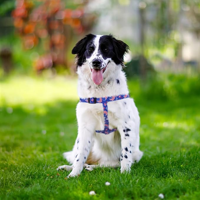 PUPTECK No Pull Dog Harness Soft Adjustable Basic Nylon Step in Puppy Vest Outdoor Walking with ID Tag, American Flag, M