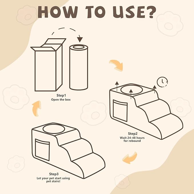 - Safe and Sturdy Design:Our pet stairs feature a durable, non-slip surface for secure climbing. The sloped design offers a low-impact way for your pet to reach elevated areas. A side pocket provides a handy spot to store snacks and toys