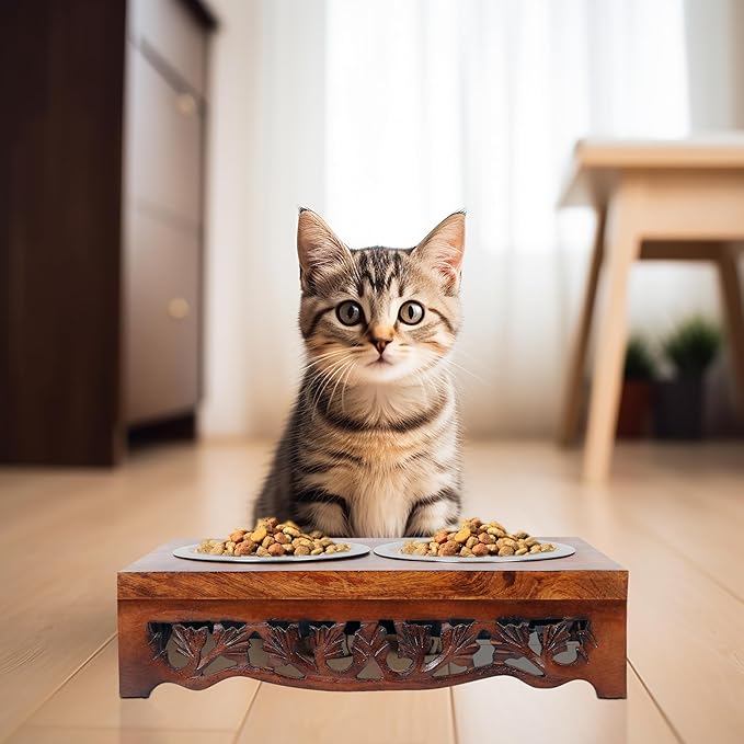 - ๐ Perfect for Small and Medium-sized Pets: Upgrade your pet's feeding experience with the Scroll Handcarved Pet Feeding Station by IRONGATE - Sleek, Eclectic, adventurous, and ready for food. This dog food stand allows your pet to eat in a healthy position to reduce stress on the neck and spine. This promotes better digestion and thus better health. Keeps your pet happy and comfortable.