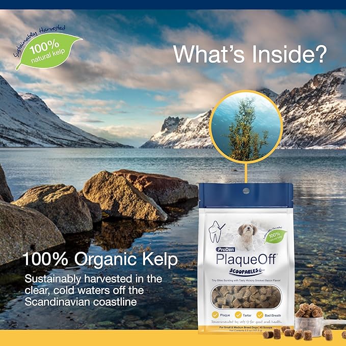 ProDen PlaqueOff Scoopables - Hickory Smoked Bacon Flavor Dental Bites for Small Dogs, Natural Kelp for Plaque & Tartar Control, Freshens Breath - Small & Medium Breed Dental Care- 45 Scoops