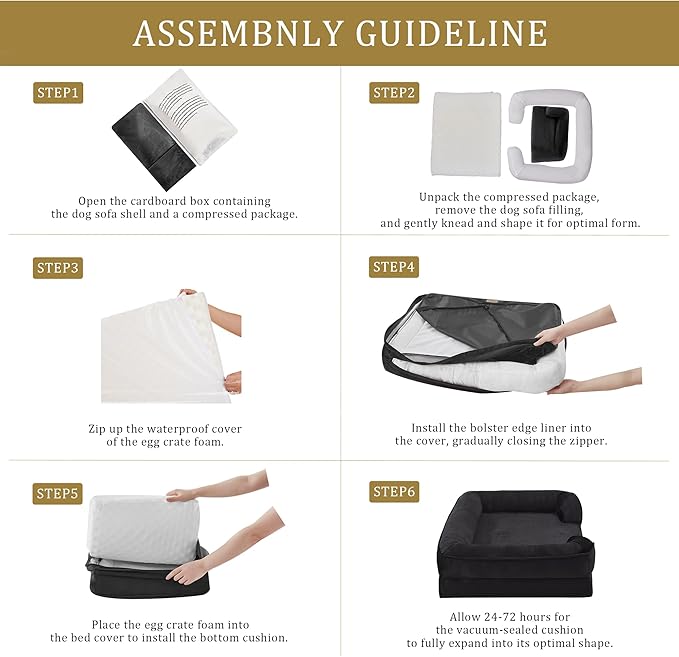Bedfolks Orthopedic Dog Bed XXL, Waterproof Dog Sofa Bed for Giant Dogs, Egg Foam Pet Couch Bed with Removable Washable Cover and Nonslip Bottom, Black