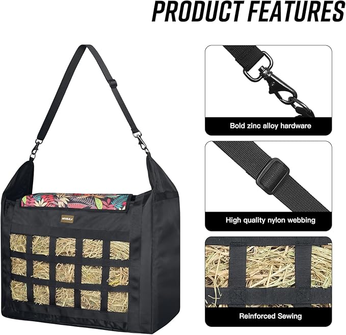 - Ample Capacity, Holds 2-3 Flakes Of Hay: Designed to accommodate the appetites of your equine companions, our horse hay feeder bag boasts a spacious interior capable of holding 2-3 flakes of hay, ensuring they stay satisfied for longer durations.