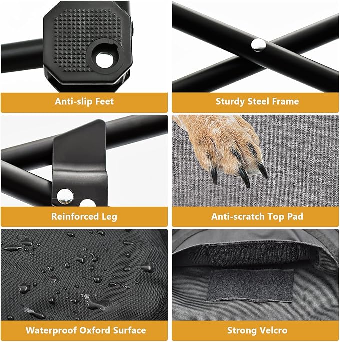 • No Assembly Required: The dog raised bed is an open-to-use design, when receive it, just open the dog bed frame and put the removable cover onto the 4 corners, it only takes 1 min to give your dog a cozy bed.