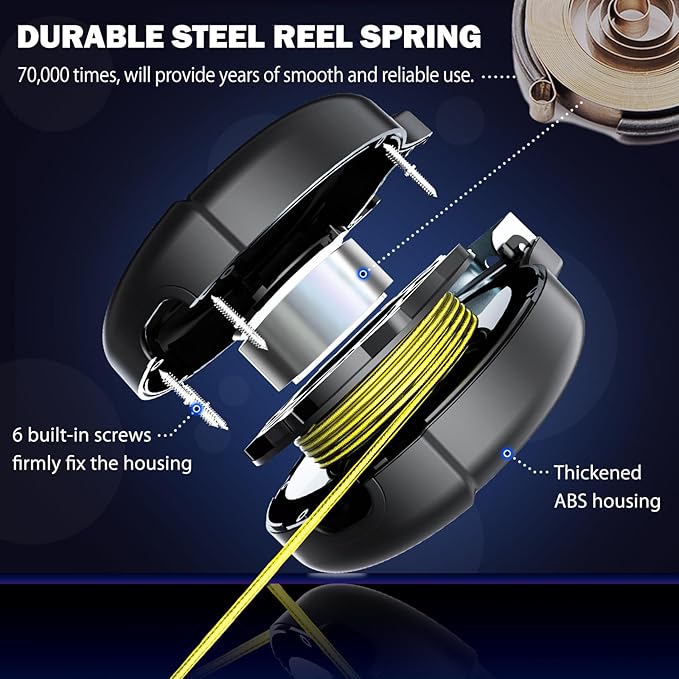 - ❤ 【DURABLE & RELIABLE RETRACTION SYSTEM】The Stainless-steel retraction springs inside the housing is well made, which can cycle back and forth over 70.000 times, will ensure a rust-free environment and will provide years of reliable use even in freezing temperatures.