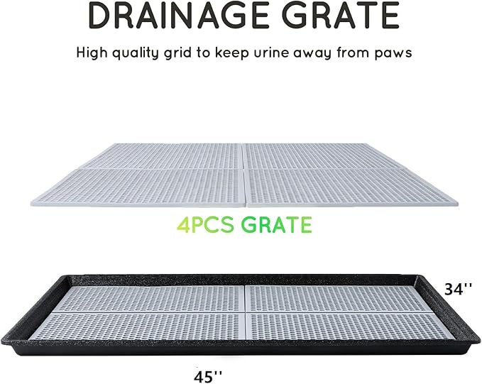 - ATTENTION : Please measure your DOG & PLACING AREA before order to make sure the size of LITTER BOX is suitable. 1×PLASTIC HOLDER (45”×34”) X-Large enough for large dogs ; protect floor better from urine and stools of pets.