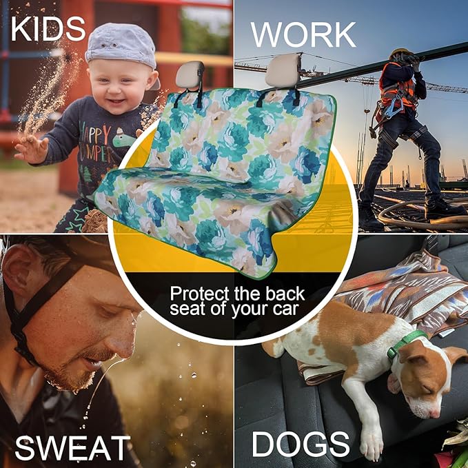 Back Seat Cover for Car Trucks Van SUV,Waterproof Rear Bench Towel Seat Covers for Dogs and Kids,Automotive Backseat Protector (Chrysanthemum)