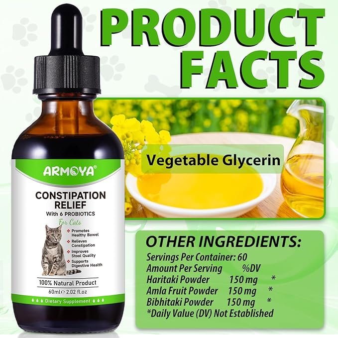 - Reliable Solution: Trusted by cat owners worldwide, our tincture is great for addressing cat constipation, ensuring your pet's health and well-being.