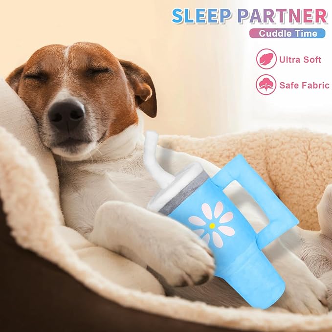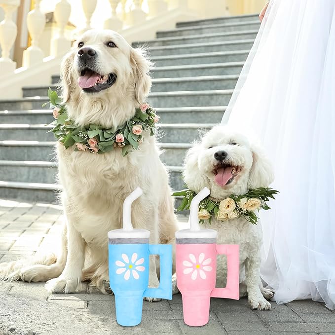 - [Funny Tumbler Design] Enjoy a playful twist with a daisy trendy tumbler-shaped dog toy, which is the same shape as the popular water cups on the market today, featuring a cute handle and straw for added fun during playtime. And the fashionable shape is perfect for you to match your dog with your photo shoots and scenarios