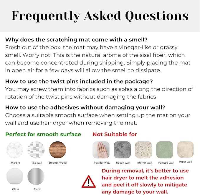 - Eco-friendly & Safe for Cats: Made from 100% natural sisal fibers and print ink free from harsh chemicals and toxins, our cat scratcher mat is eco-friendly and safe for both your cat and the environment.