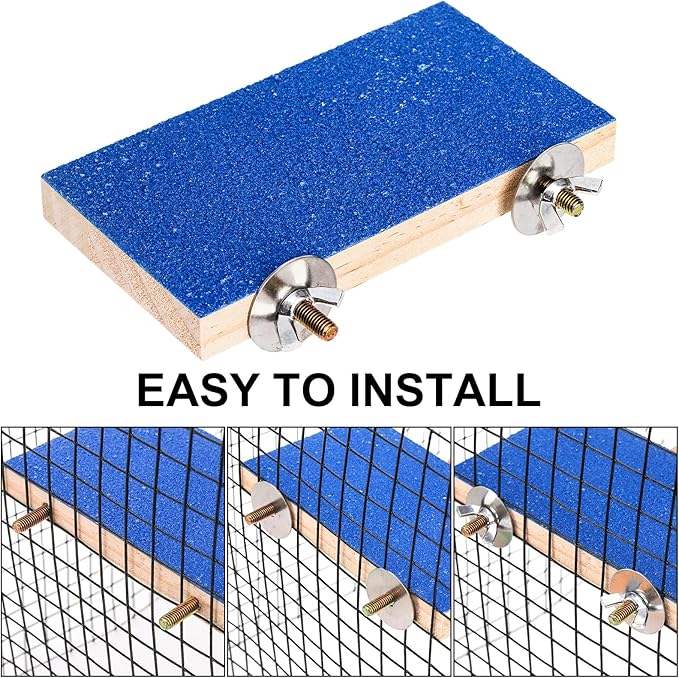 - Easy to Install: Our bird cage perch have screws, bolts, and gaskets, easy to be hung in the cage and not easy to fall. Just put the screw into the gap between the two wires of the bird cage, put the spacer on, and tighten the nut.
