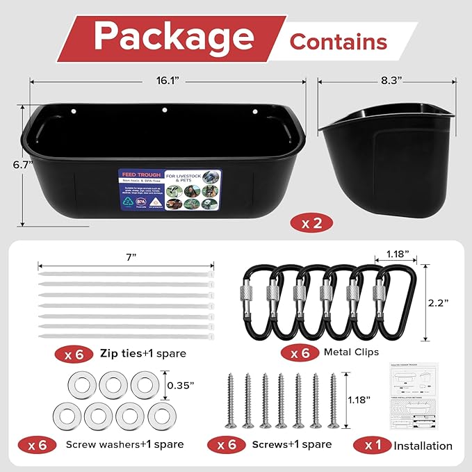 - 【9 Quart Large Capacity】Our 2 pack feeding trough is also watering trough which can hold up to 9 quarts of feed and water. On the one hand, the large capacity eliminates the need to add feed and water frequently, and on the other hand, can let a group of small animals to feed and drink at the same time. Makes feeding more organized and less chaotic.