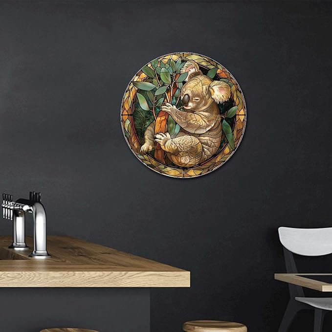 Lygond Metal Sign Tin Sign Circular Stained Glass Koala Kitty Decor for Garden 8×8 Inches