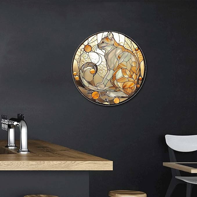 Lygond Metal Cat Toilet Decor - Circular Stained Glass Tin Sign for Club 88 Inches
