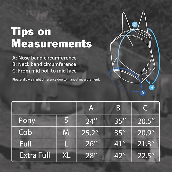 - Comfortable & Nonrestrictive: Ergonomically shaped with the horse’s comfort in mind, the mask protects the horse’s head effectively without shifting or sliding. The unique dual-tone design not only provides a fresh and eye-catching look but also increases visual interest, breaking the monotony of a single color and creating a distinctive style.