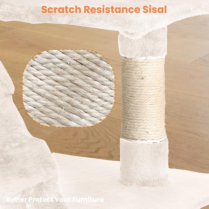 - Protect Your Furniture:Our fully functional and uniquely designed large cat scratching tree is a magical castle for kittens, providing a great place for your feline friend to climb up and down. It's a great way to relax while protecting delicate furniture from scratches, and with this tall indoor cat scratching tree, your cat can enjoy a full day in the cat tower!