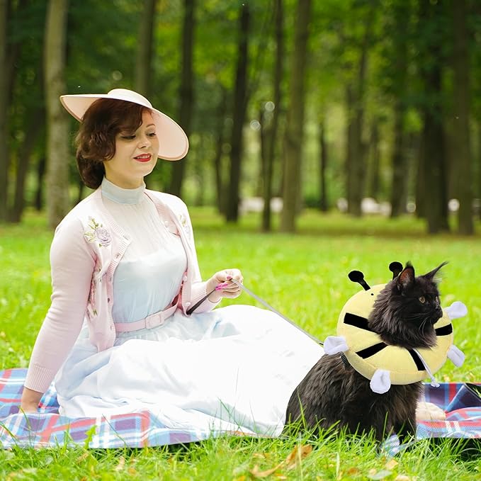 Adjustable cat Cone Collar Soft to Stop Licking After Surgery for Kitten, Alternative to Cone of Shame cat, Donut Cone for Cats, pet Elizabethan Collar (Bee, Small)