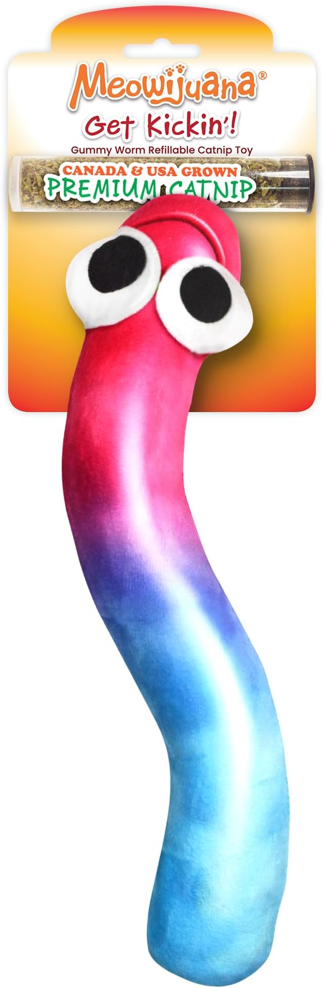 Meowijuana Kicker Toy for Cats | Get Kickin' Gummy Worm | Refillable Kicker Catnip Toy | Promotes Play and Cat Health | Includes Potent Hand Harvested Catnip Grown in North America