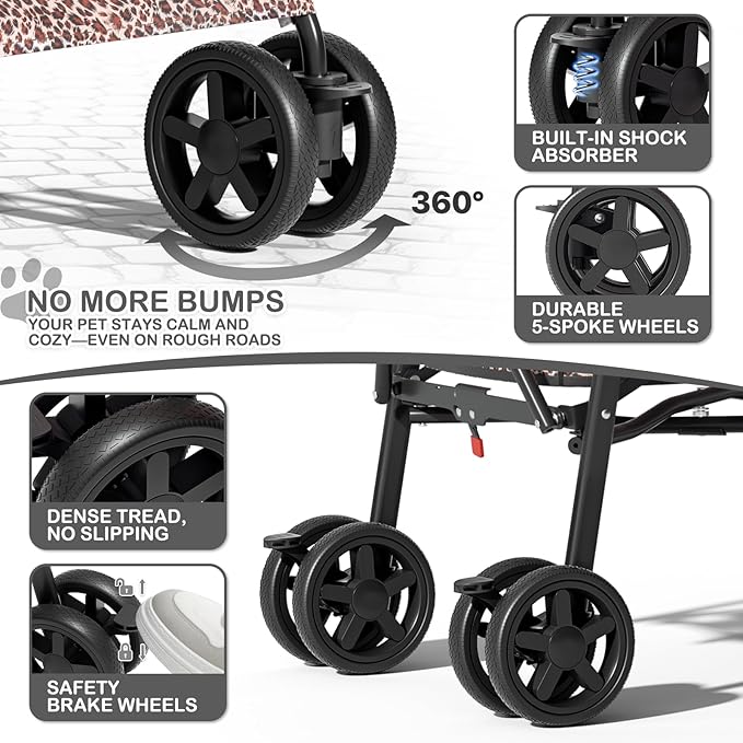 - Safety First - Navigate with confidence using our all-terrain pet stroller, featuring smooth-rolling wheels for all types of surfaces and equipped with dependable rear wheel brakes for your pet's safety and your peace of mind.