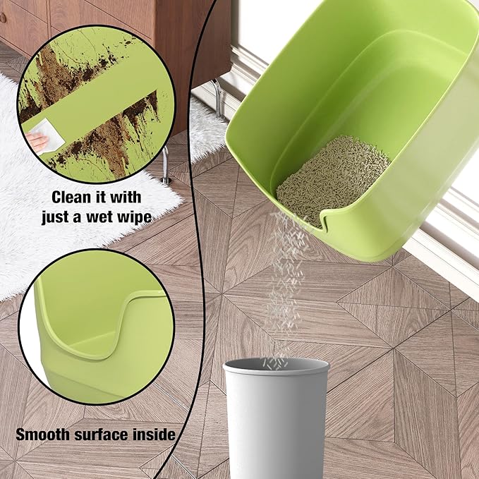 - No Gaps: One-piece molded construction requires no assembly, simple and no gaps, cat litter won't leakage or get stuck in the crevices, say goodbye to annoying cleaning problems,making cleaning easier.