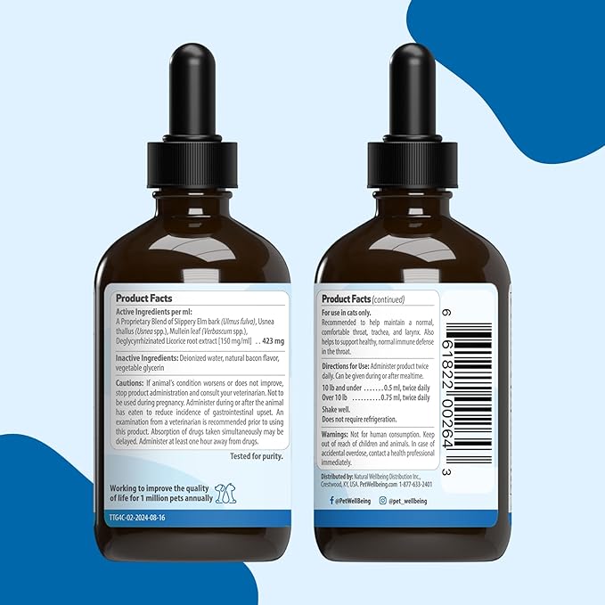 Pet Wellbeing Throat Gold for Cats - Supports Throat Comfort, Upper Respiratory Health, Occasional Throat Hoarseness, Slippery Elm, Mullein - Veterinarian-Formulated Herbal Supplement 4 oz (118 ml)