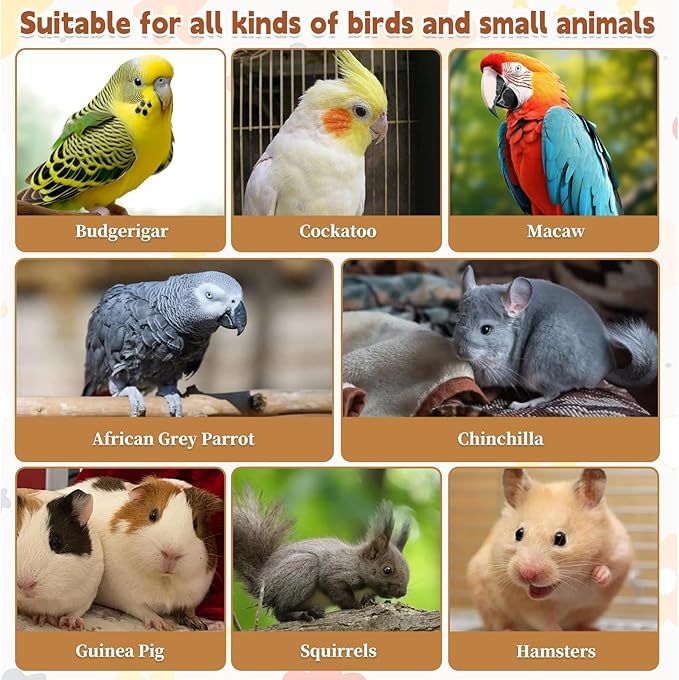 - WIDELY USED: This natural bird perch is suitable for small to medium sized birds such as canaries, cockatoos, budgies, parakeets, lovebirds, also suitable for hamsters, chinchillas, other small animals to improve their overall comfort and well-being