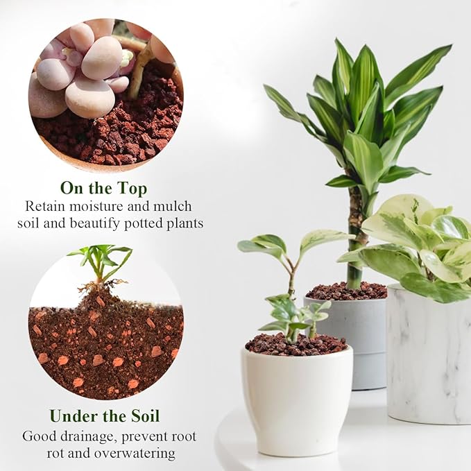- 【Succulent Rocks】Adding lava rocks mulch to maintain plants like orchids, succulents, cacti, and bonsai trees ensures proper drainage while maintaining moisture. It is not only aesthetically pleasing but also prevents weeds from growing