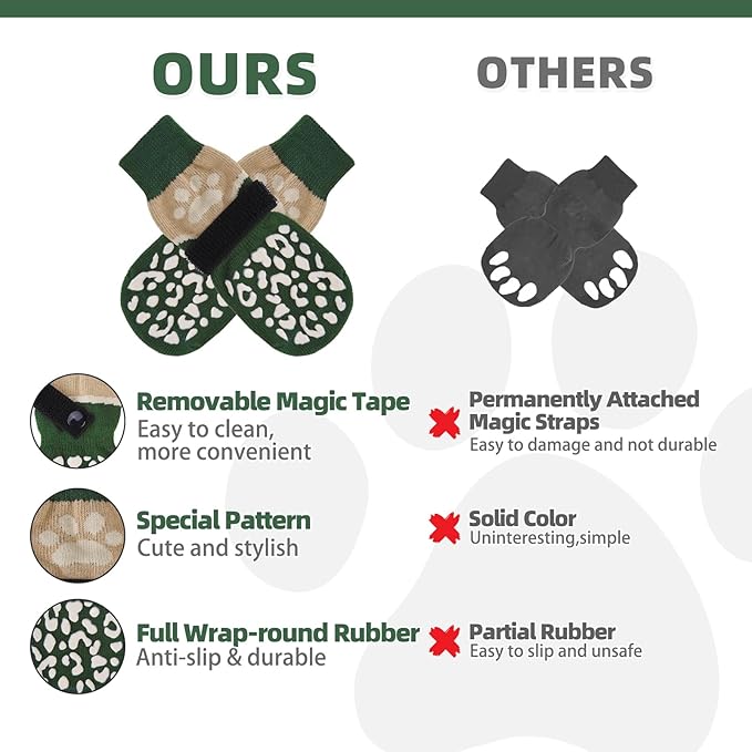 - DOUBLE SIDED NON-SLIP: Each side of the sock has the grip, which provides additional traction when your dog walks on a smooth floor. Even if the socks are twisted, they can still work. In addition, the design of the double-sided grip ensures a longer lifespan of the socks. When the grip on one side is worn and has no anti slip effect, it can cause the dog to wear on the other side, exerting a new anti slip effect.
