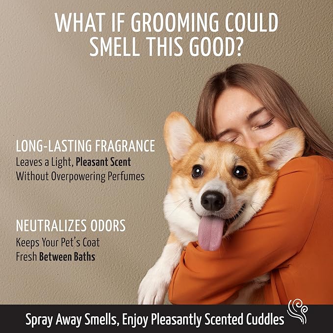 - Moisture-Locking, Deodorizing Leave-In Formula: Our lightweight, no-rinse dog conditioner hydrates dry coats while also eliminating odors and keeping your pet smelling fresh; making it perfect as a deodorizing grooming spray between dog baths