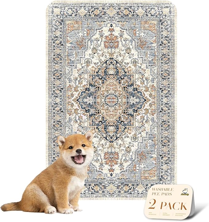 nunubaby Washable Pee Pads for Dogs, Stylish, Non-Slip and Leak-Proof Pee Pads. Reusable Potty Pads for Dogs for Crates and Floors.(Beige/Multi, 24" x36" )