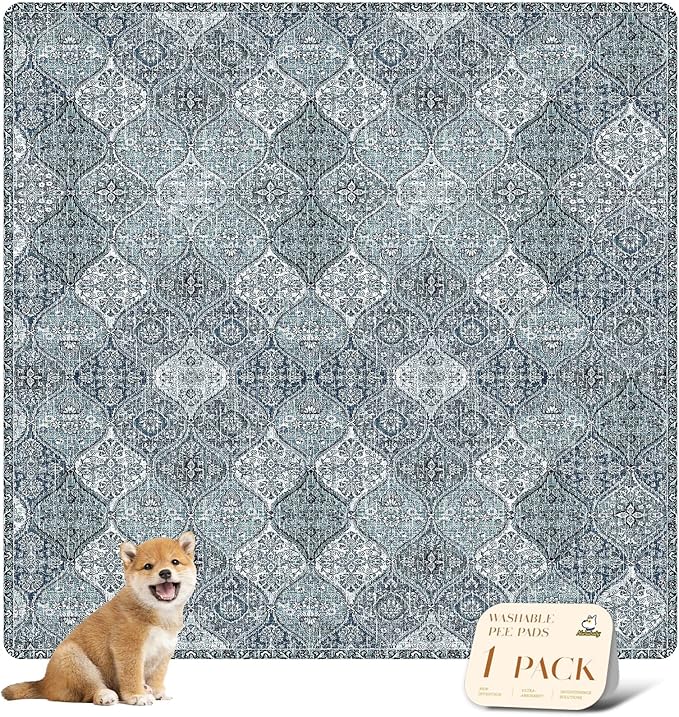 nunubaby Washable Pee Pads for Dogs, Stylish, Non-Slip and Leak-Proof Pee Pads. Reusable Potty Pads for Dogs for Crates and Floors.(Blue/Multi, 72" x72" )