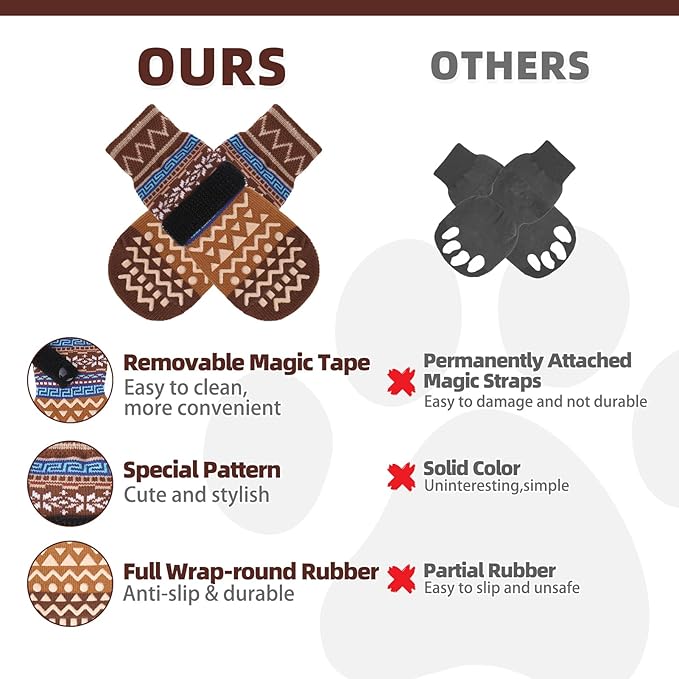 - DOUBLE SIDED NON-SLIP: Each side of the sock has the grip, which provides additional traction when your dog walks on a smooth floor. Even if the socks are twisted, they can still work. In addition, the design of the double-sided grip ensures a longer lifespan of the socks. When the grip on one side is worn and has no anti slip effect, it can cause the dog to wear on the other side, exerting a new anti slip effect.
