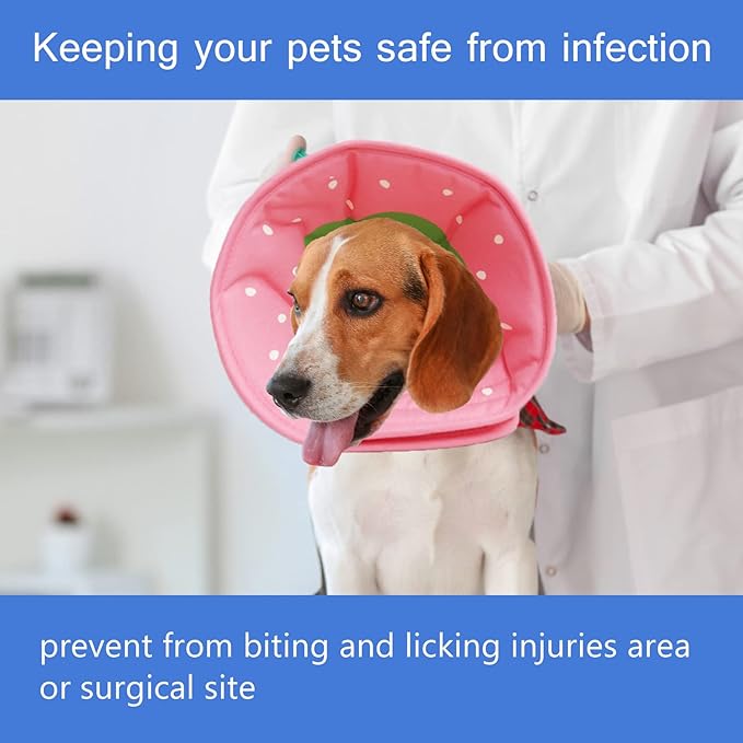 Soft Dog Cone, Lightweight Elizabethan Collar for Dogs, Adjustable Soft Cones for Dogs/Cats to Stop Licking After Surgery, Cute Strawberry Cone of Shame Alternatives for Pets(X-Small)