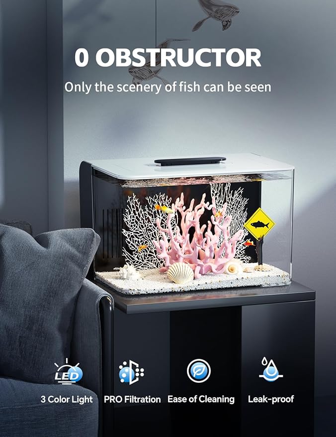 - [Well-designed] One-piece full-covered tank with round corners, reducing the risk of accidental contact. And the water flows evenly back through the aquarium heater in the back, avoiding the impact of local temperature differences on sensitive organisms (e.g., Neocaridina shrimp)