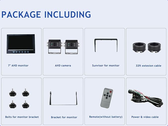 - 【APPLICATIONS】This is an upgraded industrial grade ahd 1080P wired 2-camera system. For its high vibration resisance ability of 10G and wide power input range DC12-24V, it is suitable for large vehicles, such as buses, box trucks, pickup trucks, garbage trucks, flatbed trucks, dump trucks, street sweeper trucks, refrigerator trucks, motor homes, vans, skid steers, farm tractors, combines, cotton pickers, crop sprayers, bulldozers, snow plows, forklifts, excavators, heavy equipments,etc.