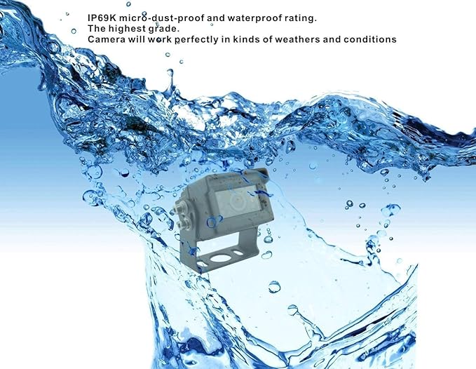 - 【HEAVY DUTY CAMERA】It is color camera with the resolution of 1080P, provides super clear and real color image. The viewing angle is 120 degree. With waterproof rating IP69K(the highest level), with night vision. So it works perfectly in kinds of weathers. With Heavy duty, 10G vibration-proof rating, it works well with the vehicle which has intensive vibration in extreme conditions.