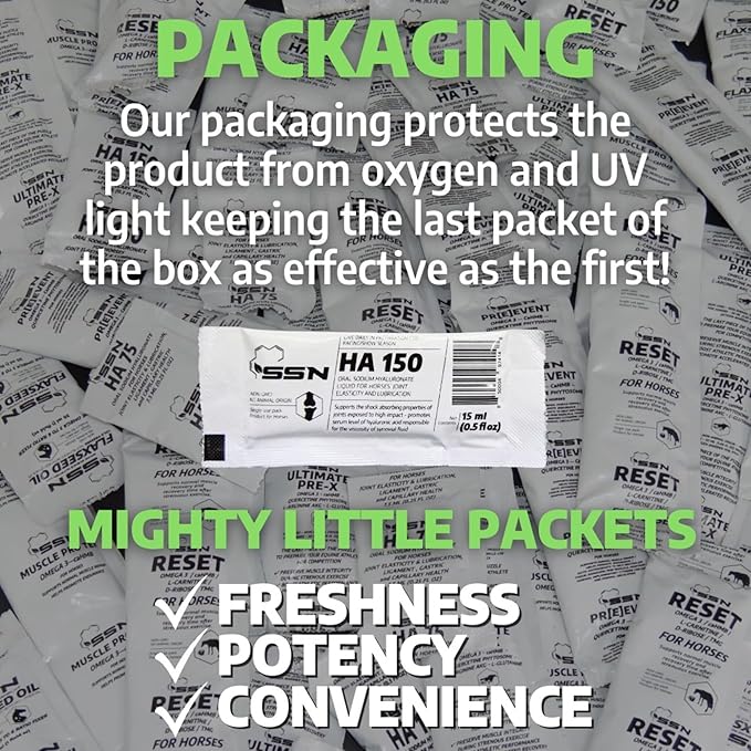 SSN HA 150 - 4 In 1 Horse Supplement - 60 Servings - Equine Joint, Gastric, Ligament/Tendon, Lung Capillary Health - Glucosamine Alternative - (60 Pack, 150mg Sodium Hyaluronate per Serving)