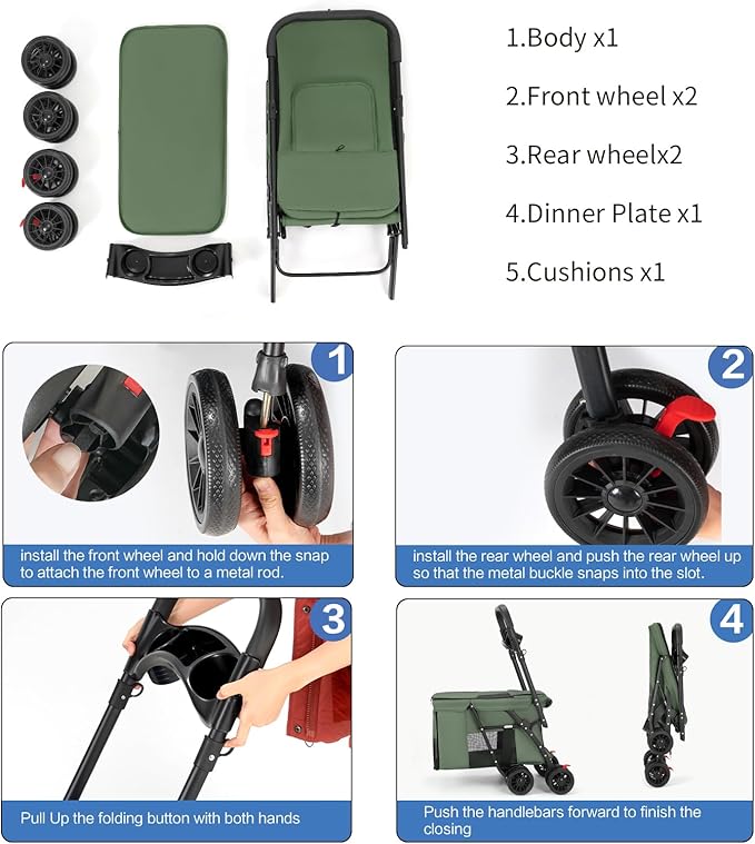 Pet Stroller Cat Dog Stroller Travel Folding Pet Carriers(Green)