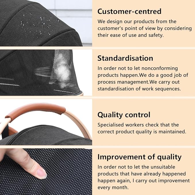 - SAFETY AND RELIABILITY: The four wheels are made of durable PU material to suit all occasions. The pushchair has large wheels and the front wheels can swivel 360°, these wheels not only ensure durability but also provide smooth and quiet operation. Whether you are walking on the sidewalk or on rough ground, our pet stroller will provide a comfortable and pleasant experience for your pet.