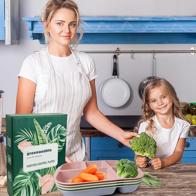 - FOOD SAFE and HEALTHY: Greenandlife divided plate sets are made of wheat straw and food grade PP material, non-toxic and BPA free. Safe and healthy for everyone to use, especially for kids and children. In addition, they are recyclable and no pollution to the environment