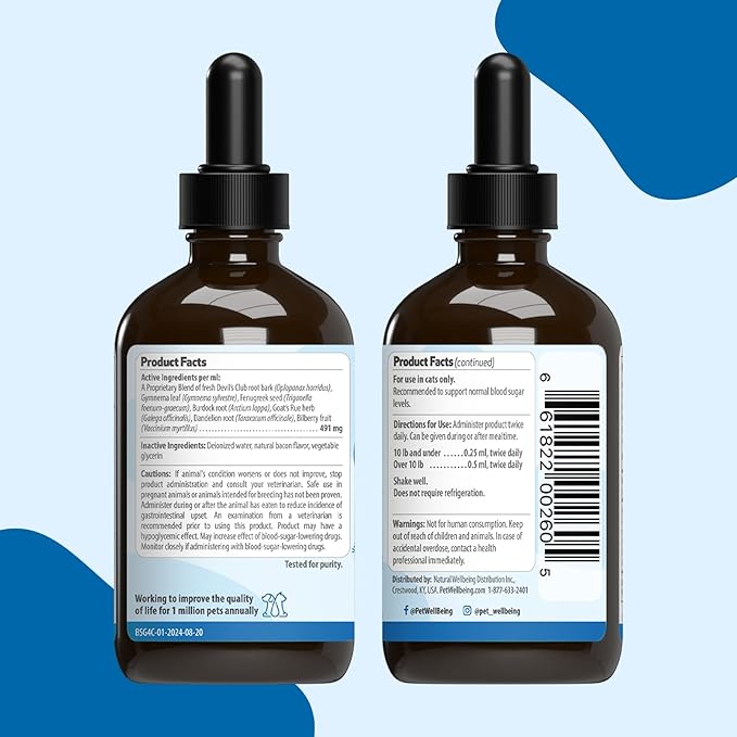 Pet Wellbeing Blood Sugar Gold for Cats - Healthy Blood Sugar Levels, Pancreas & Liver Function, Devil’s Club, Gymnema - Veterinarian-Formulated Herbal Supplement 4 oz (118 ml)