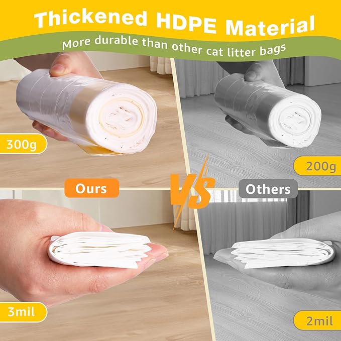 - 🍃3MIL Thickened Cat Litter Bags: These cat litter bags feature a thickened design that is sturdy and durable, does not tear easily, can easily hold up to 20 pounds of cat litter waste, no more urine or litter seeping into your litter box, greatly reducing the hassle of cleaning up cat litter.