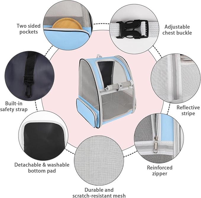 - Ventilated Mesh and Comfortable: Three-sided PVC mesh design ensures excellent air circulation and visibility, you can clearly view the status of pets inside the bag, and pets can also observe the outside. And this cat carrier backpack is firmly structured, providing ample room for your pet to move around