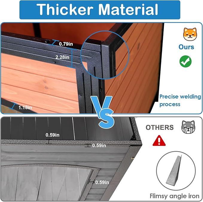 - Durable Iron Frame: Our precision-welded iron frame provides unmatched durability and longevity, outperforming traditional angle iron frames. Your large dog house will stand strong for years