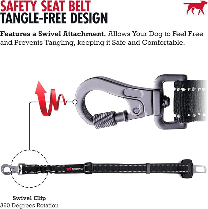 Tuff Pupper Dog Seat Belt | Adjustable Length Dog Seatbelt Restraint | Tangle-Free Locking Carabiner | Shock-Absorbing Bungee | Reflective Stitching for Visibility | Universal Fit for Cars & Trucks