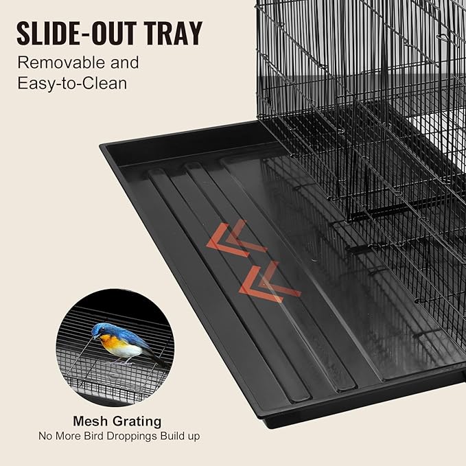 - Easy to Clean: This cockatiel cage comes with a bottom sliding tray for easy cleaning. And the grid net avoids bird droppings from accumulating.