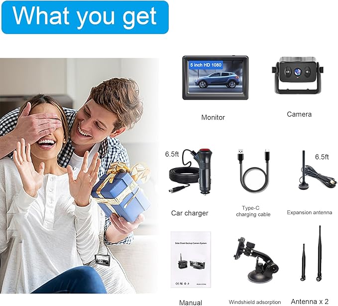 Wireless Backup Camera for Trucks & RVs, Solar - Powered - Magnetic, Portable, No - Drill, No - Wire Easy Install, Night Vision, Rechargeable with 5" HD Monitor systems for Car, Camper, Trailer
