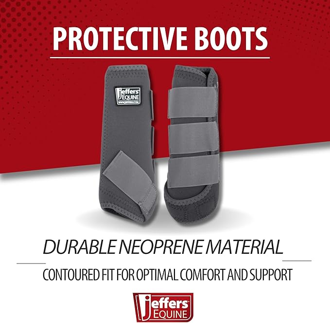Jeffers Equine Protective Horse Boots 1 Pair Grey - Safe Neoprene Leg Guards & Comfortable Fit, Durable Strap Closures, Front & Hind Support, Equestrian Accessories for Travel & Riding - Large