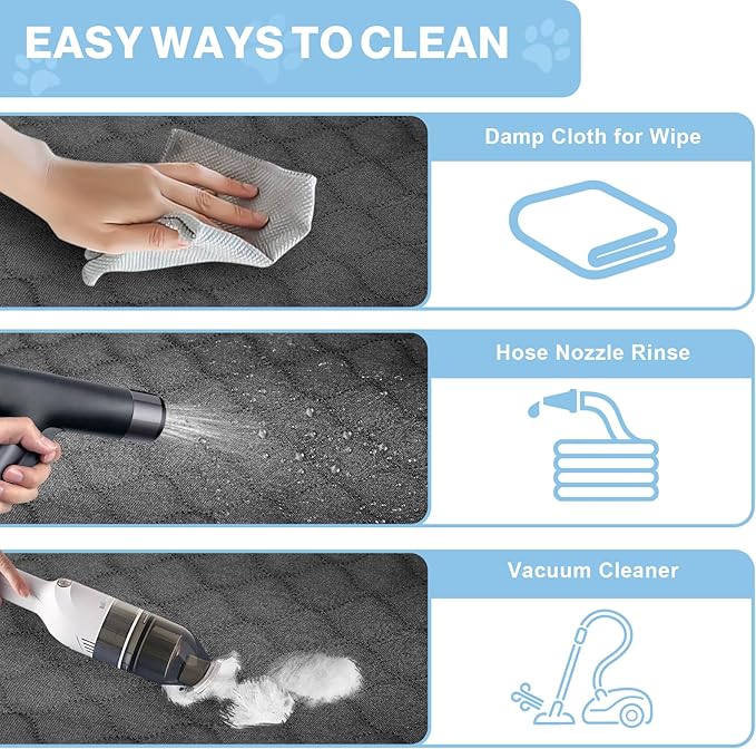 - Easy to Clean: Whether it’s mud, dust, or liquid spills, cleaning this car seat cover is a breeze. Simply hand wash, machine wash, or vacuum to keep it looking brand new. Say goodbye to complicated cleanups after each trip!