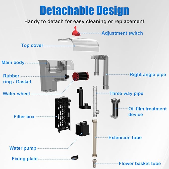 - DUAL-LAYER FILTRATION - Our aquarium filter features an advanced dual-layer filtration system that combines mechanical and biological filtration for a cleaner, healthier aquatic environment. With its oil film removal function, it effortlessly eliminates stubborn oil films, leaving your water surface crystal clear and your aquarium pristine